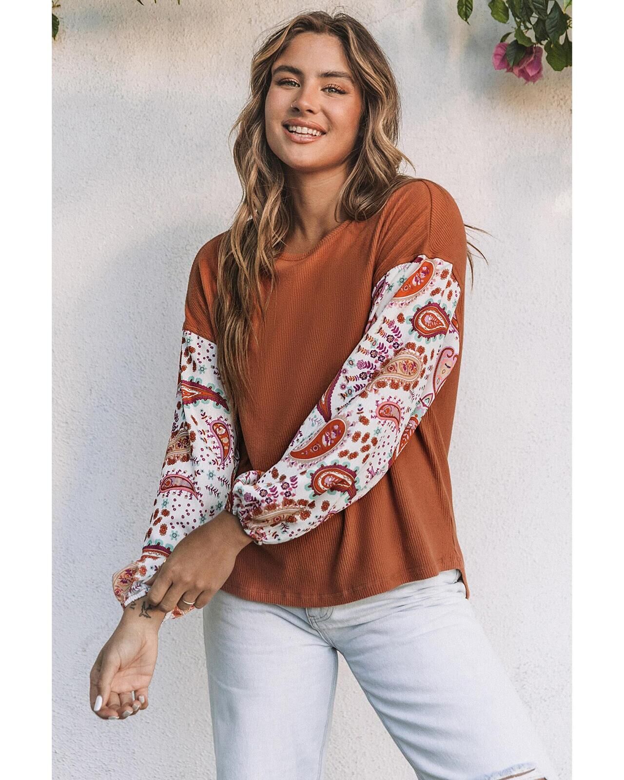 Azura Exchange Contrast Bubble Sleeve Ribbed Top