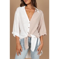• Stylish and trendy V Neck Collared Curved Hem Contrast Colorblock Shirt