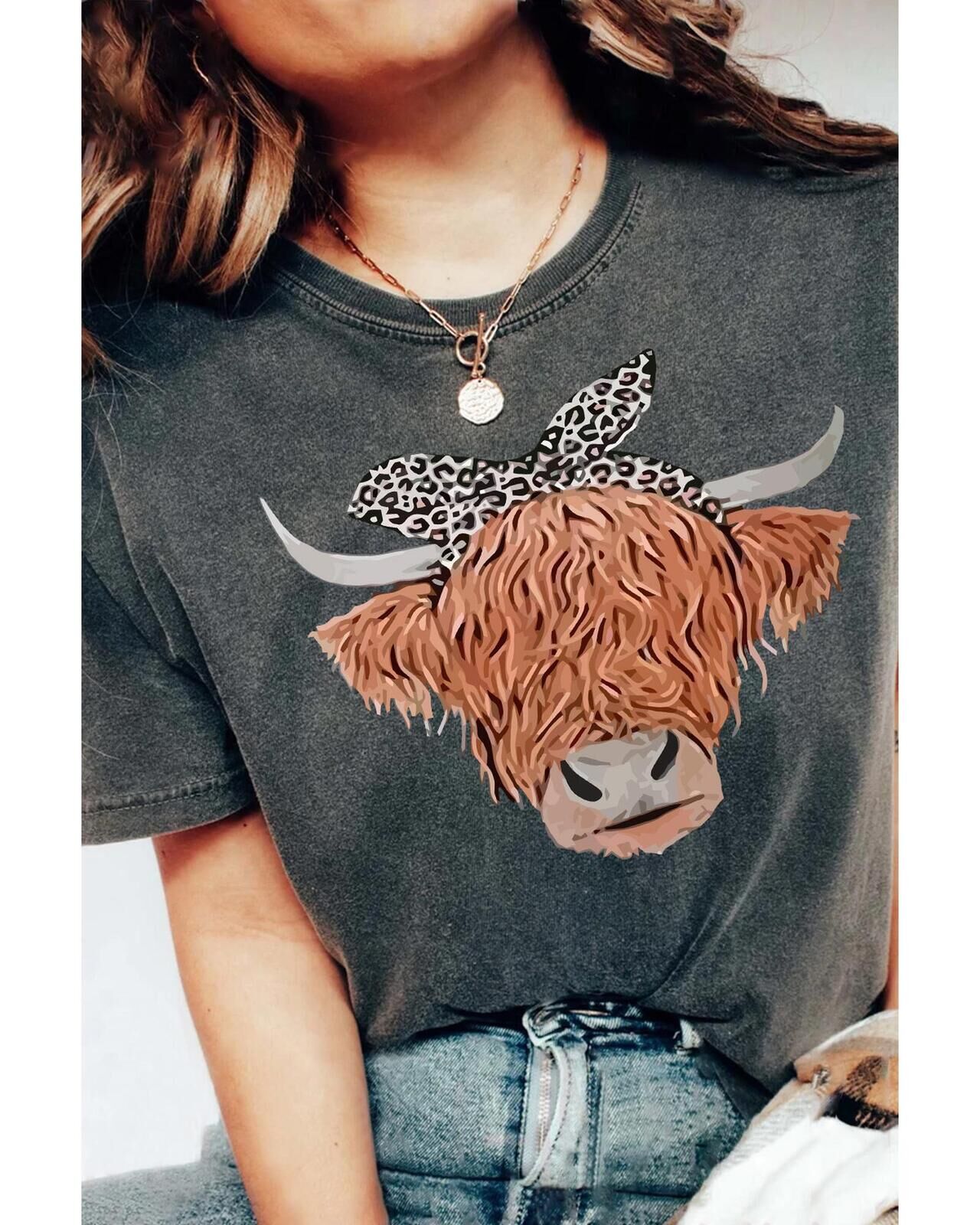 • Quality Western Cow Head Print Short Sleeve Casual T-Shirt