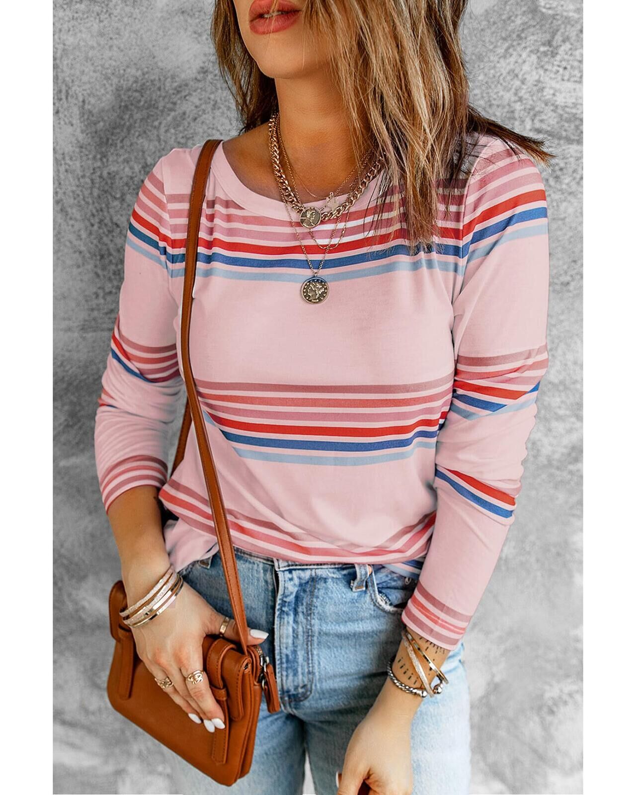 • Stylish and versatile Stripe Print Crew Neck Long Sleeve Top