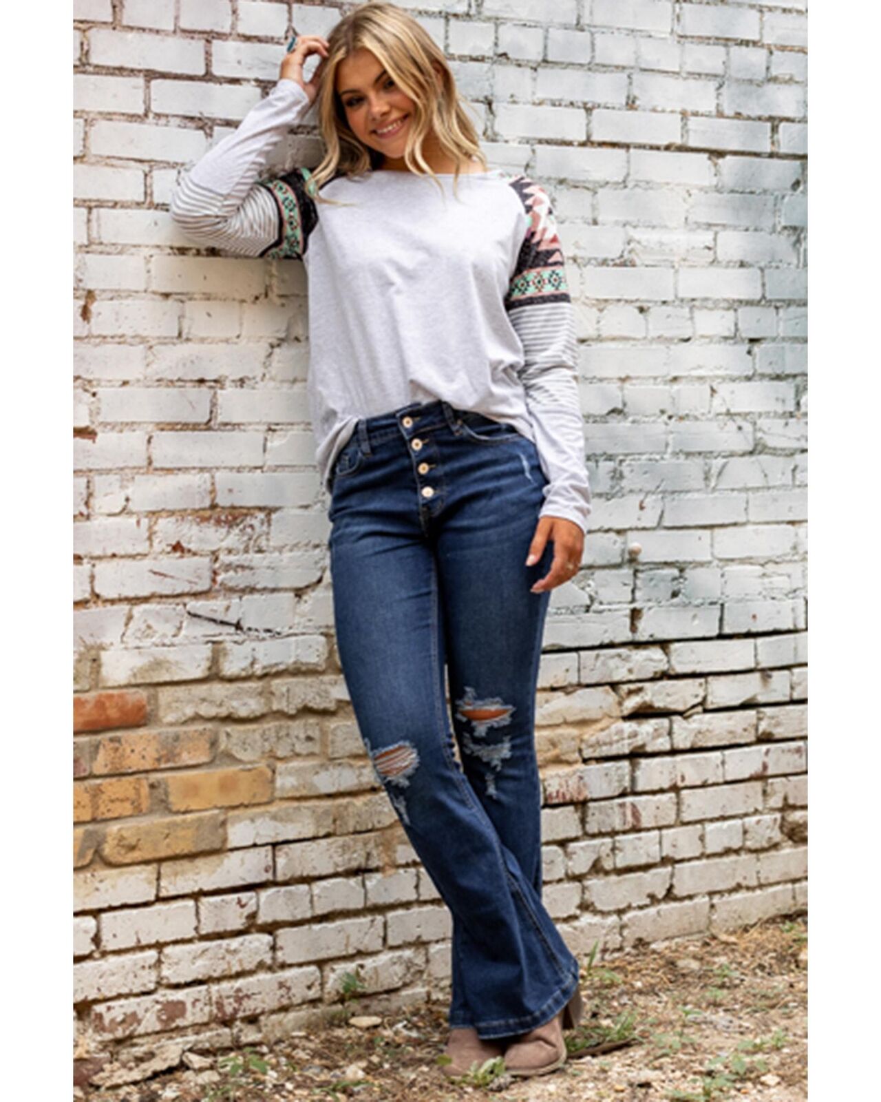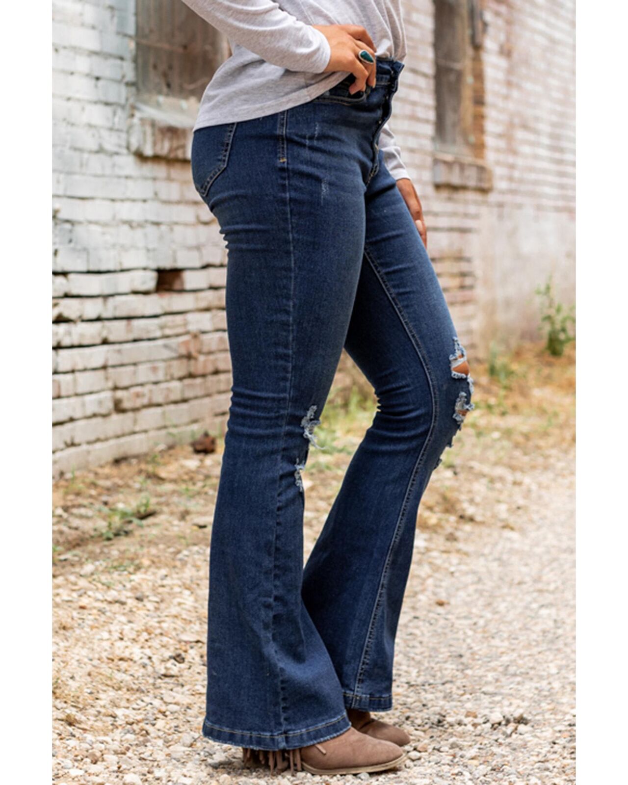 Azura Exchange Distressed Flare Bottom Jeans - S