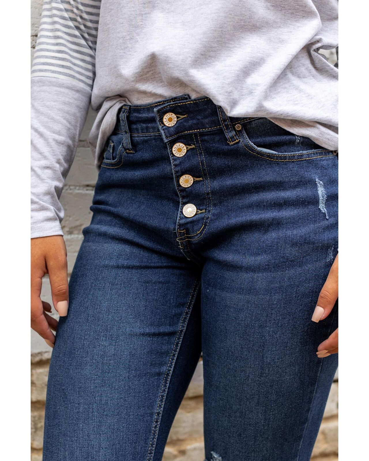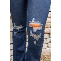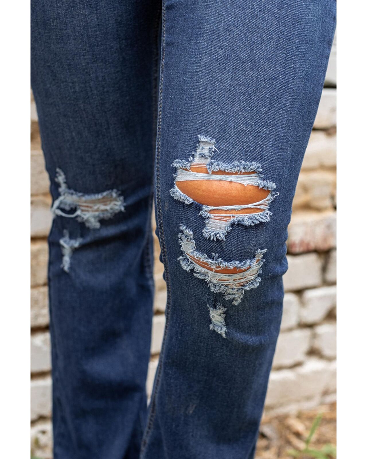 • Trendy and edgy Dark Washed Distressed Flare Bottom Jeans
