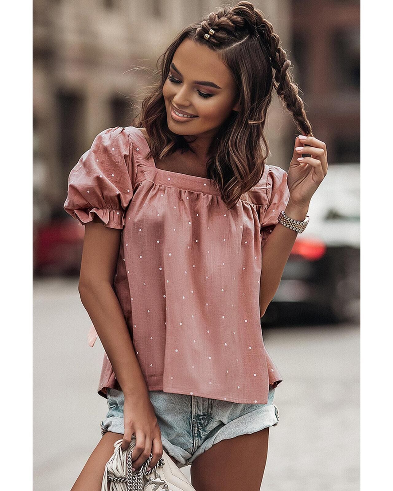 Azura Exchange Dotted Print Puff Sleeve Blouse with Tie Back