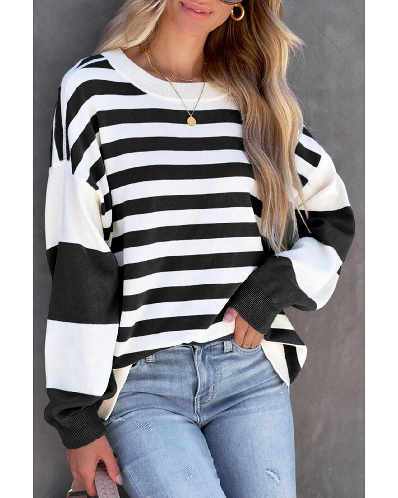 Azura Exchange Drop Shoulder Striped Pullover Sweatshirt