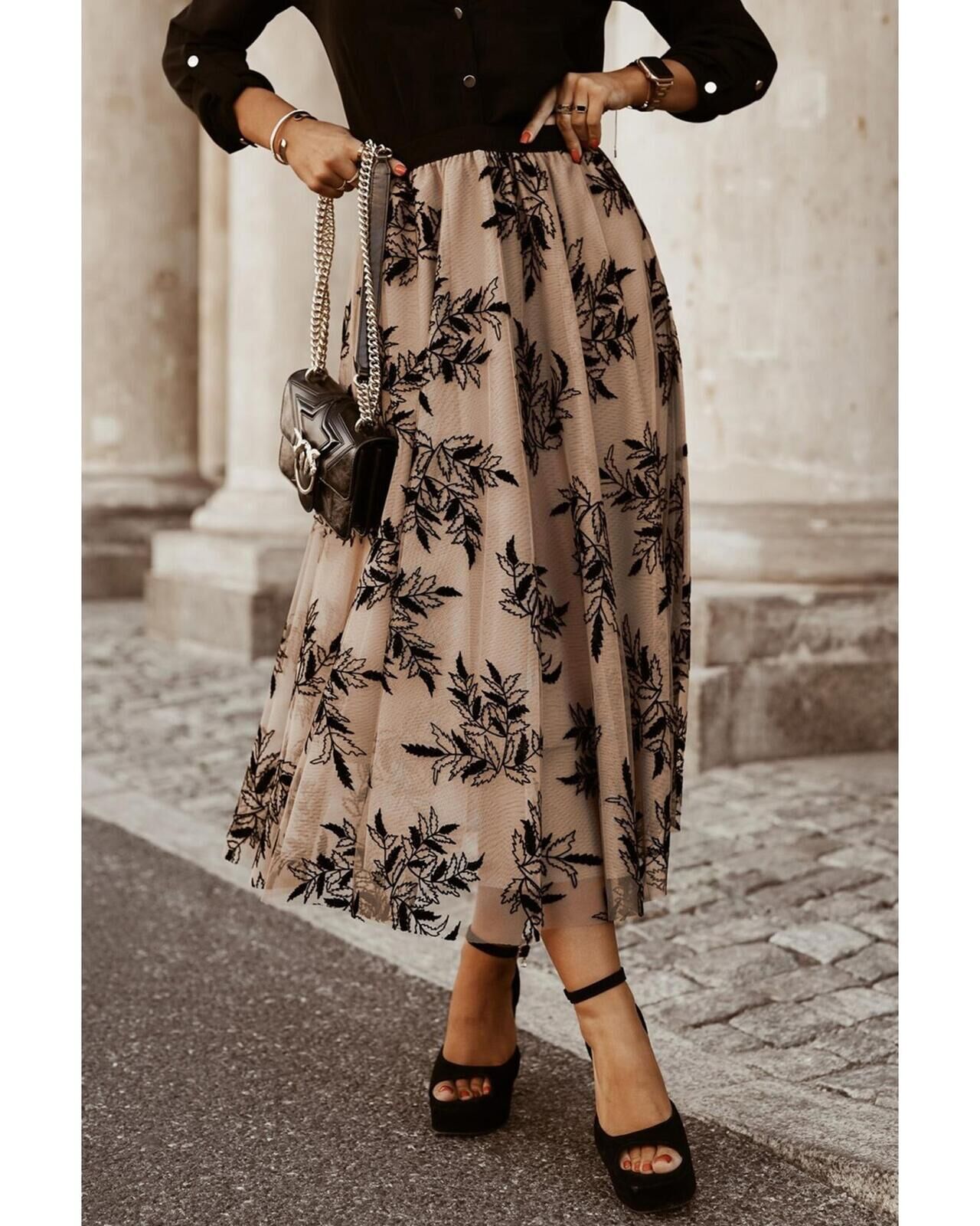 • Luxurious Floral Leaves Embroidered High Waist Maxi Skirt
