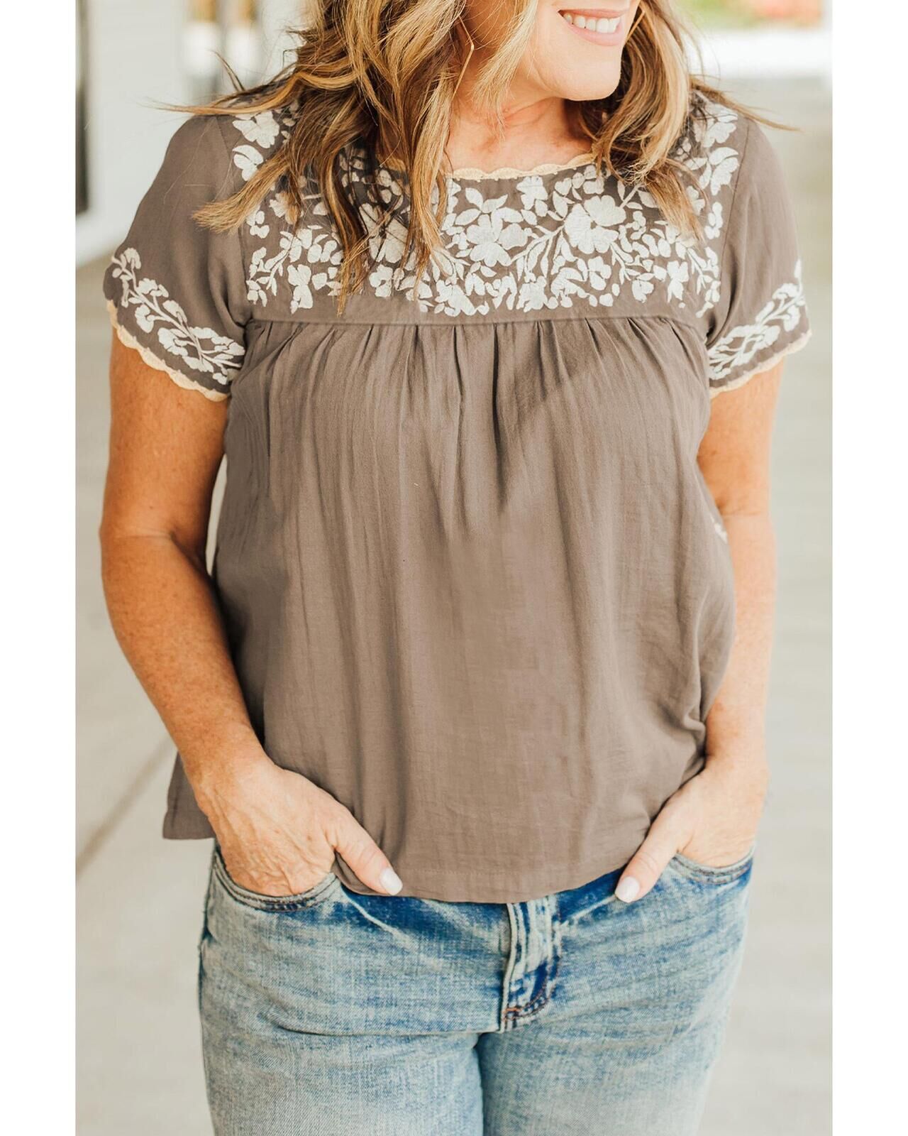 Azura Exchange Embroidered Short Sleeve Blouse