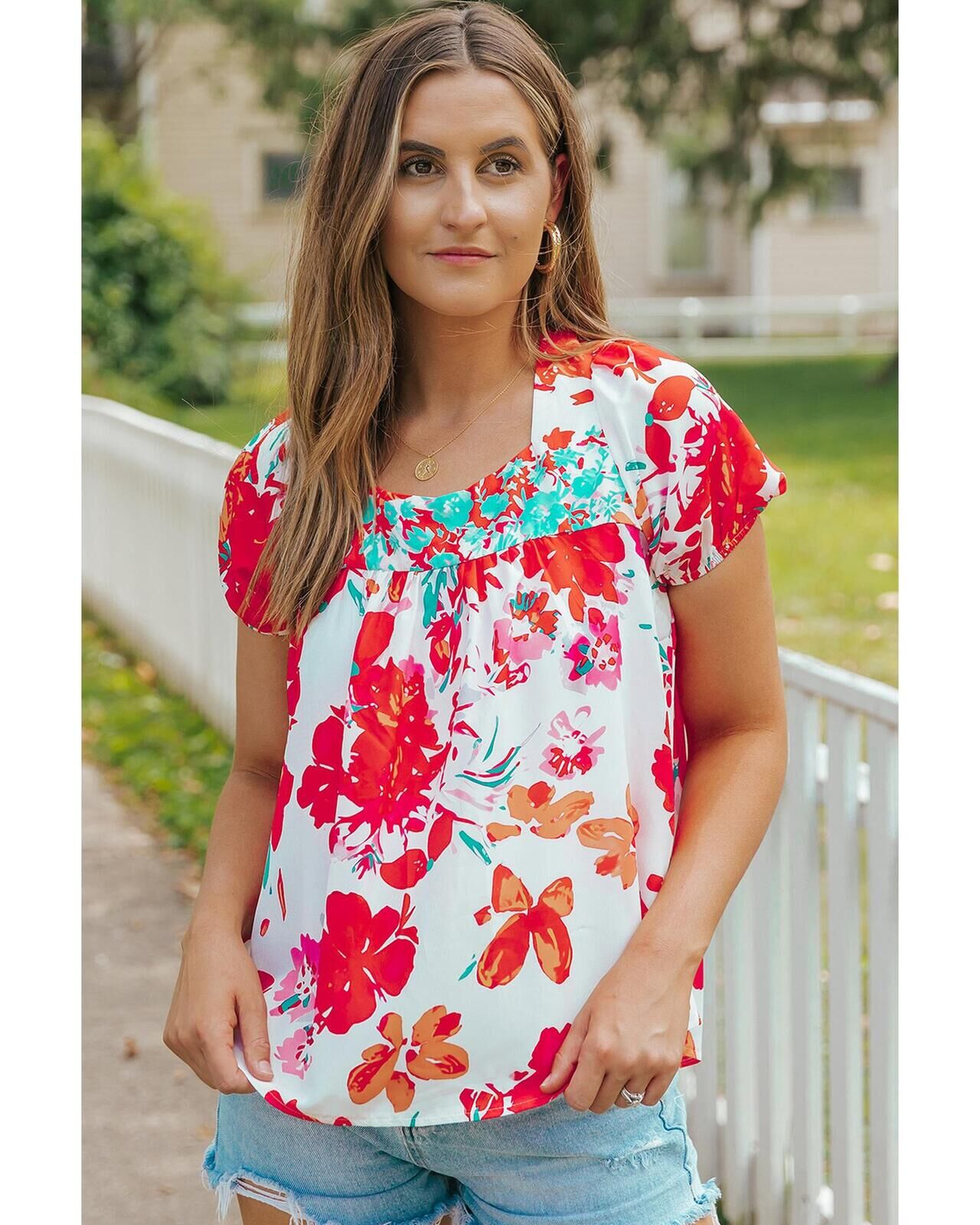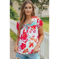 • Floral printed blouse with embroidered details