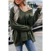 Azura Exchange Exquisite Green Long Sleeve Top with Split Neck and Exposed Seam Detail