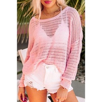 • Knitted Eyelets Round Neck Long Sleeve Top