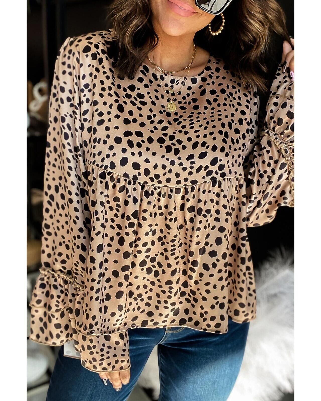 Azura Exchange Flared Sleeve Satin Peplum Blouse