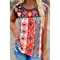 • Multicolor Floral Aztec Geometric Cap Sleeve Top