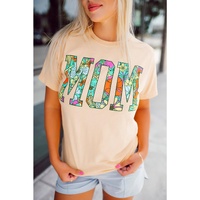 • Stylish and trendy Khaki MOM Floral Letter Print T-Shirt