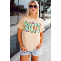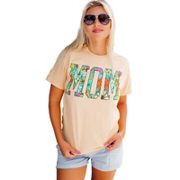 • Stylish and trendy Khaki MOM Floral Letter Print T-Shirt