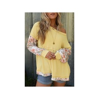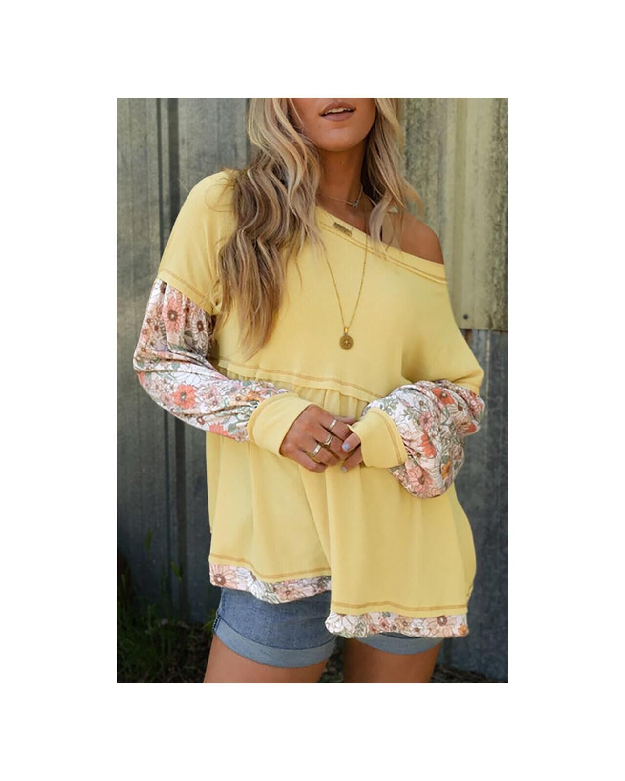Azura Exchange Floral Patchwork Waffle Knit Babydoll Blouse