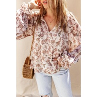 • Stylish and feminine Boho Floral Print Split V Neck Bubble Sleeve Blouse