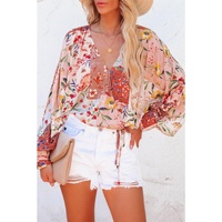Azura Exchange Floral Print Patchwork Wrap V Neck Blouse