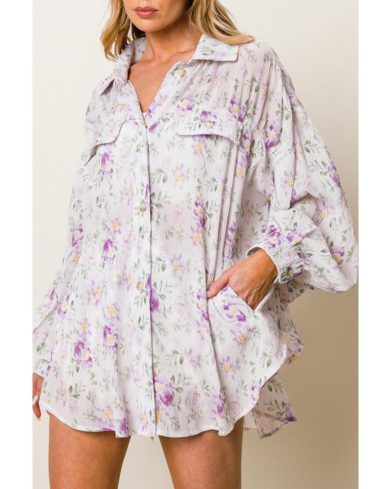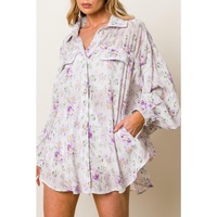 Azura Exchange Floral Print Pleated Flap Pocket Shirt