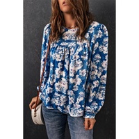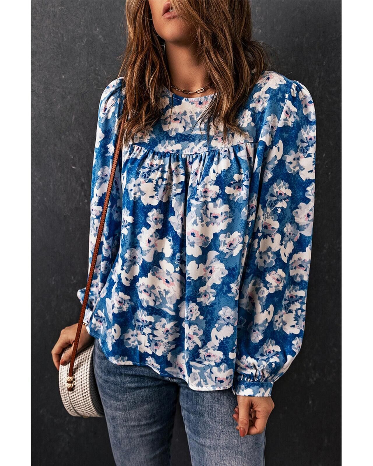 • Floral Print Puffy Sleeve Babydoll Blouse