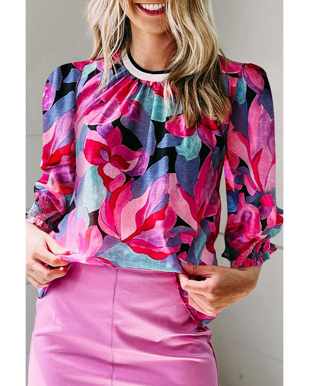 Azura Exchange Floral Print Ruched Sleeve Puff Sleeve Blouse