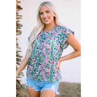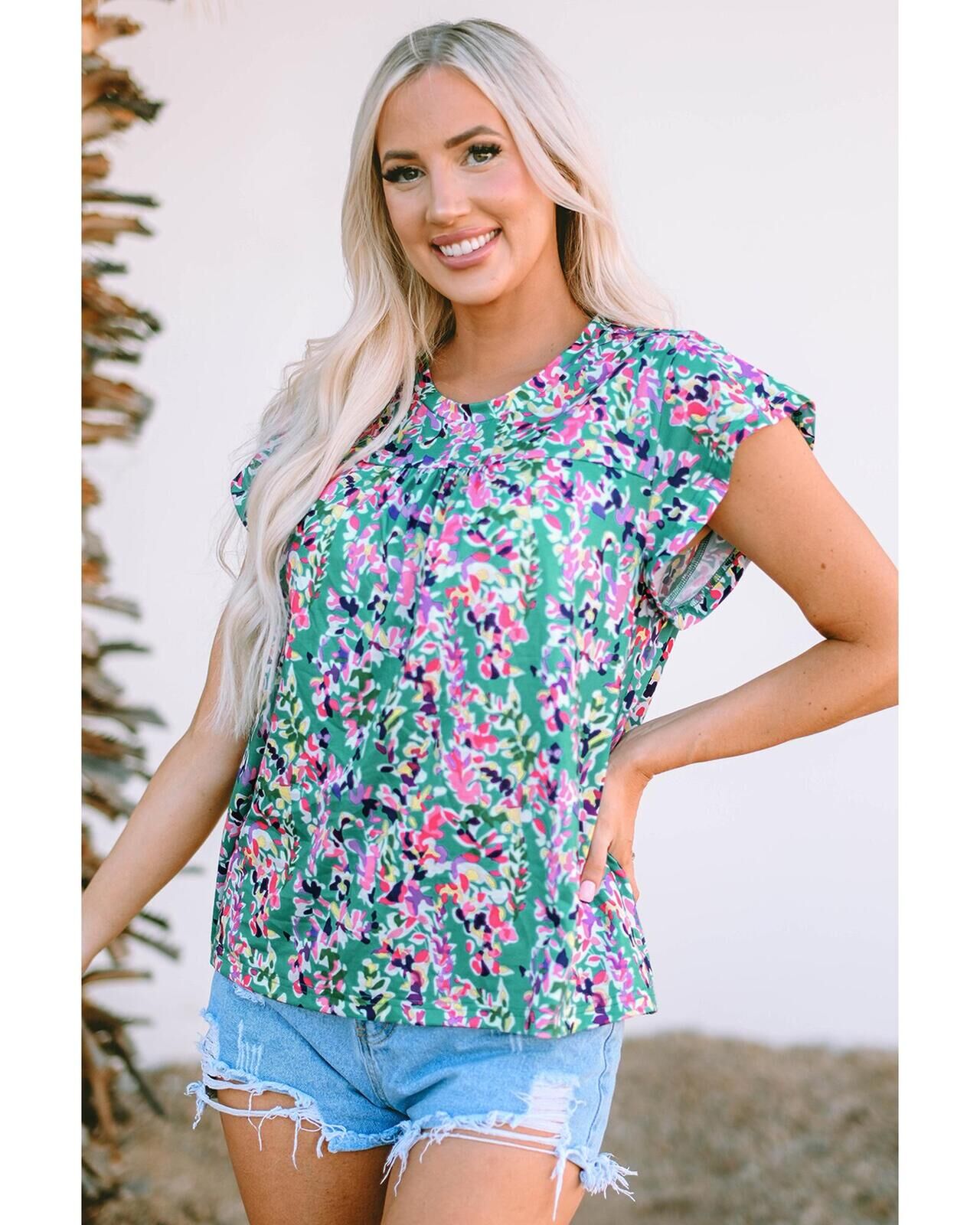 Azura Exchange Floral Print Ruffled Short Sleeve Babydoll Top