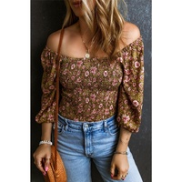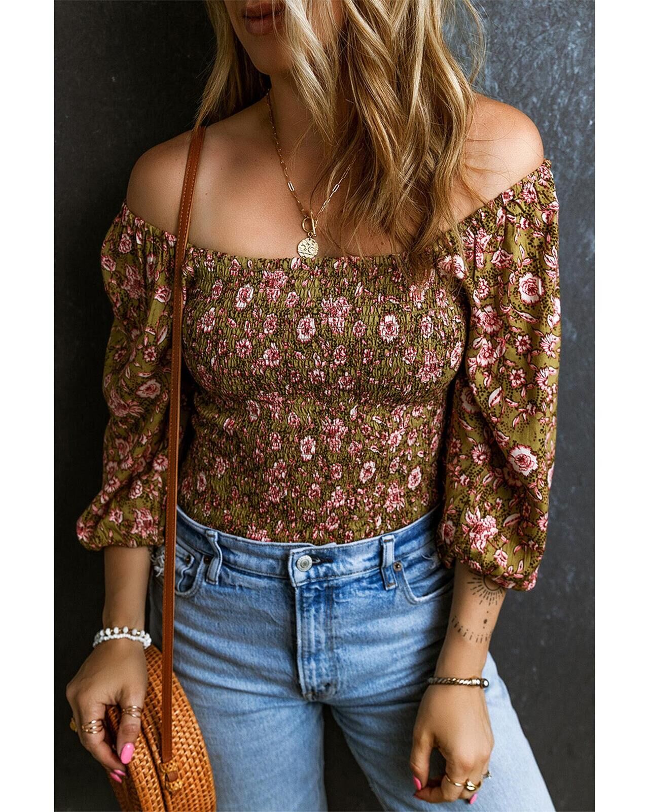 Azura Exchange Floral Print Shirred Off Shoulder Blouse