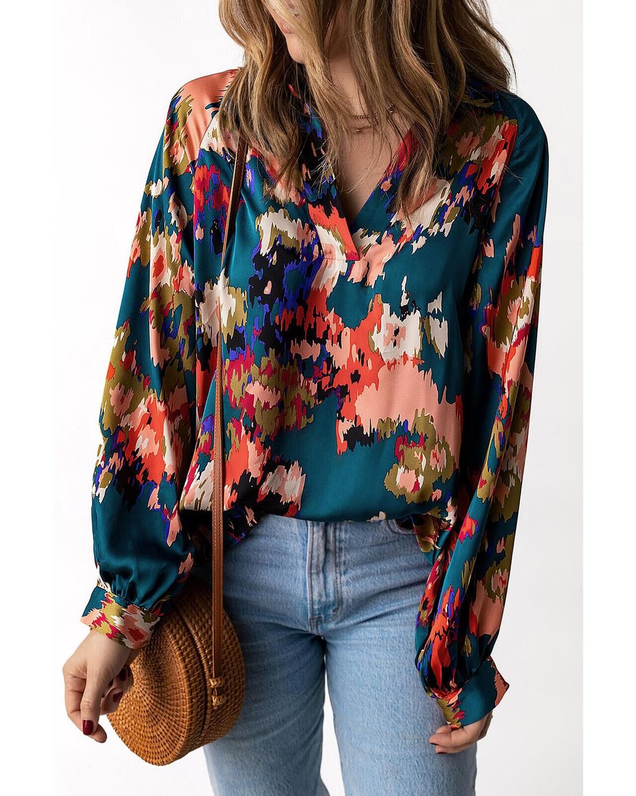 • Luxurious and stylish Graffiti Printed V Neck Puff Sleeve Blouse