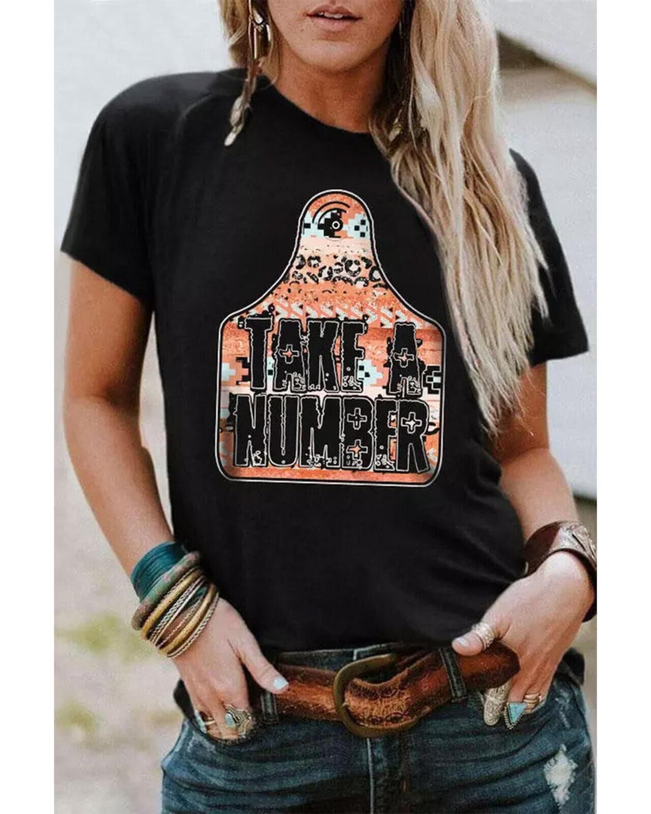 • Womens TAKE A NUMBER Graphic Crew Neck Tee