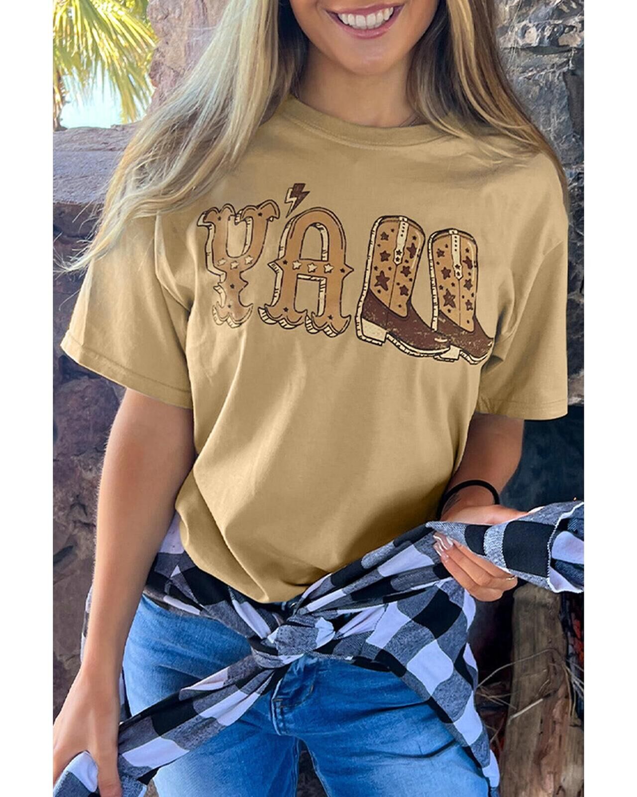 Azura Exchange Graphic Print Khaki Western Boots T-shirt