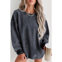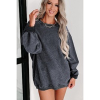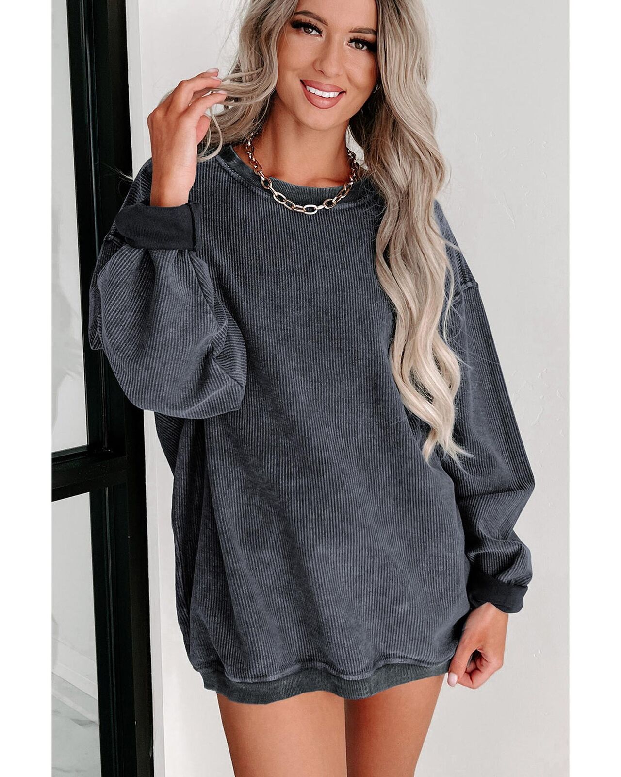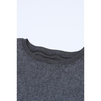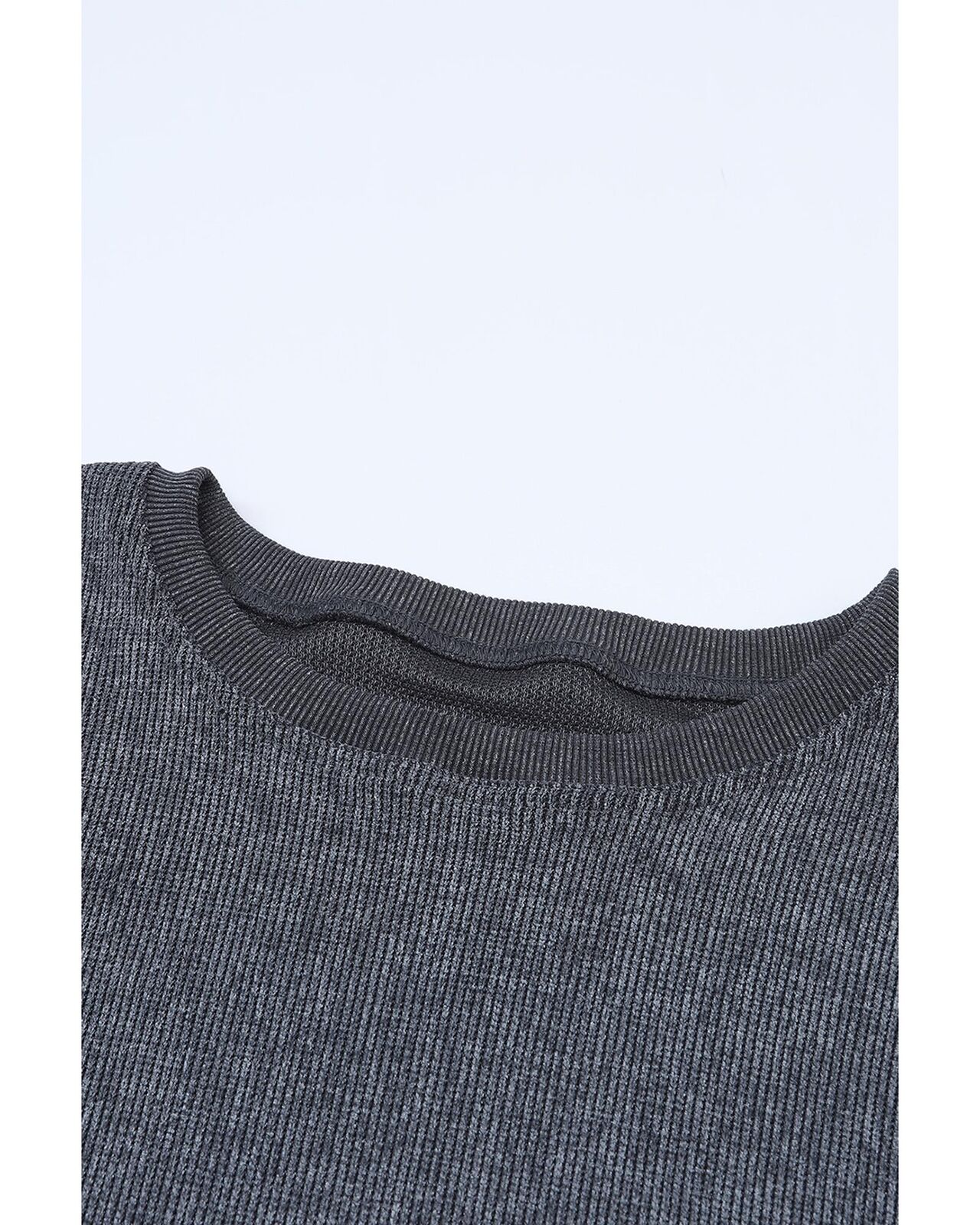 Azura Exchange Gray Ribbed Knit Round Neck Pullover Sweatshirt - 2XL