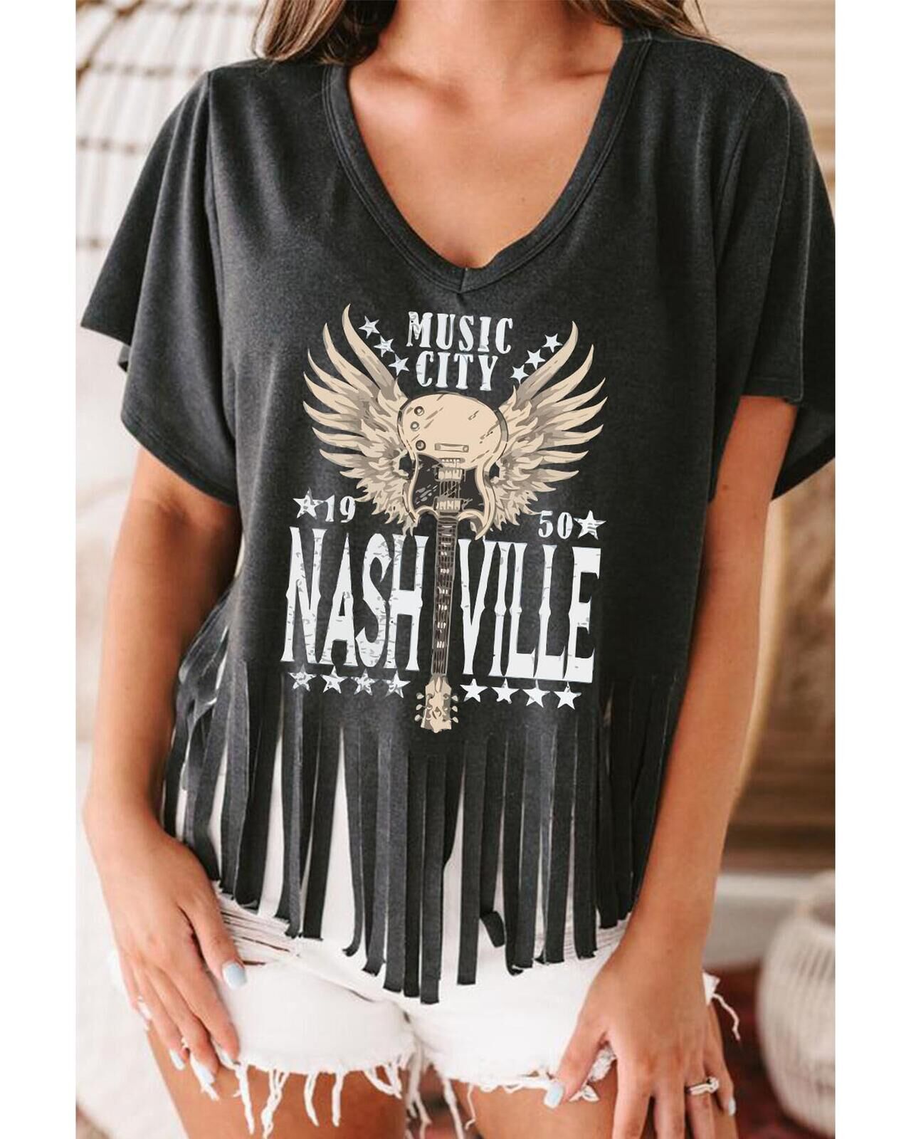 Azura Exchange Guitar Wings Slogan Graphic Print Fringed T-Shirt