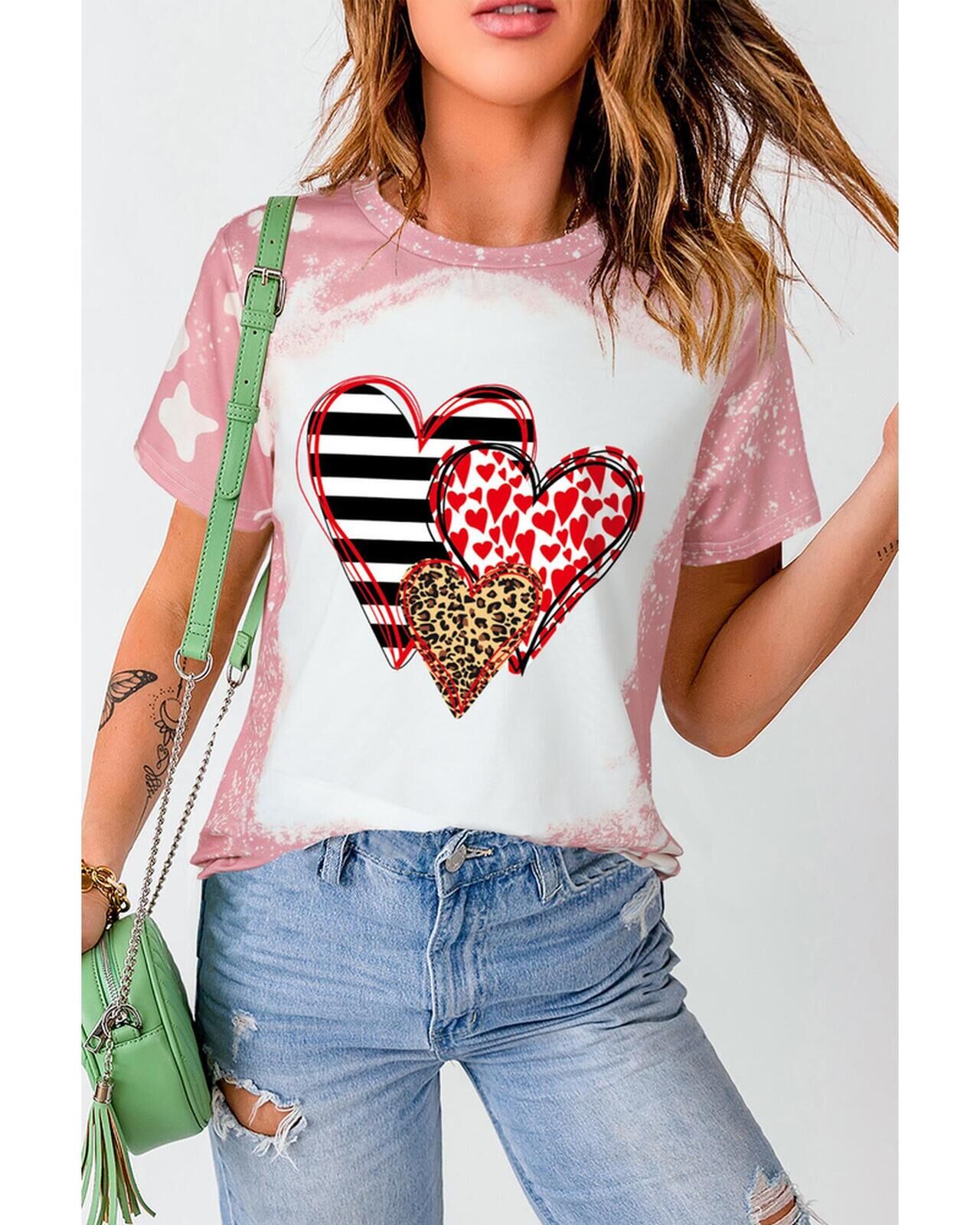 • Heart Shaped Tie Dye Contrast Short Sleeve T Shirt