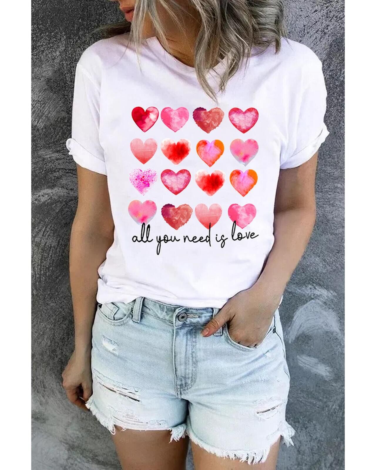• Stylish and trendy Valentine Hearts Letter Print Short Sleeve T-shirt