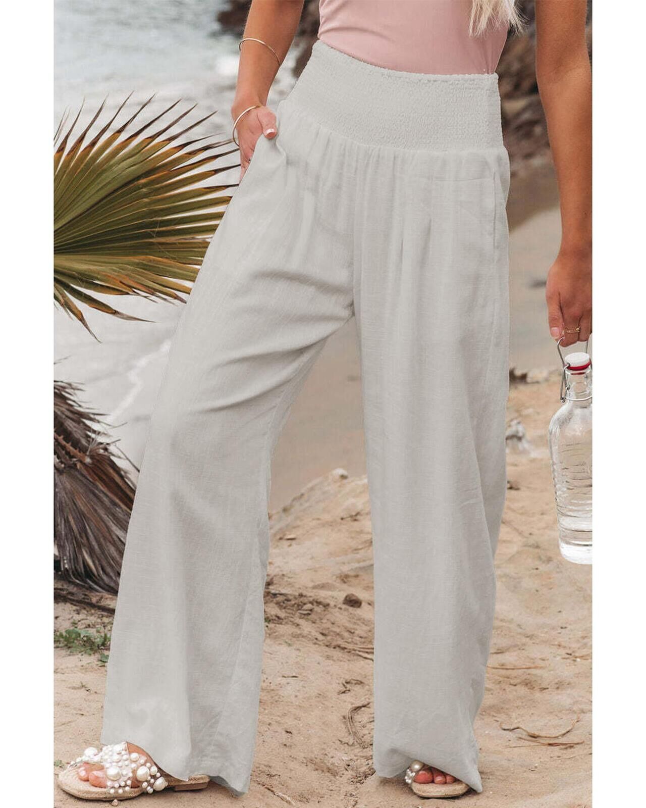 Azura Exchange High Waist Wide Leg Pants with Smocked Waistband