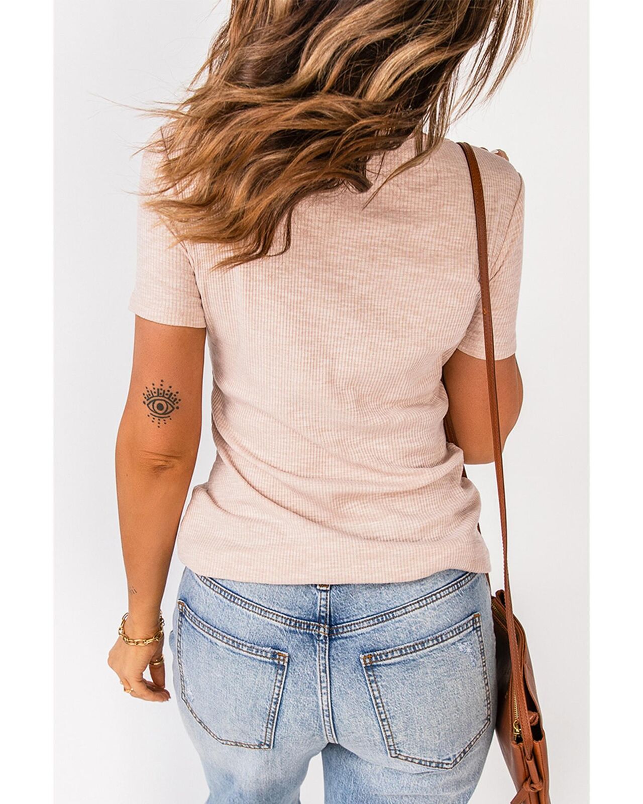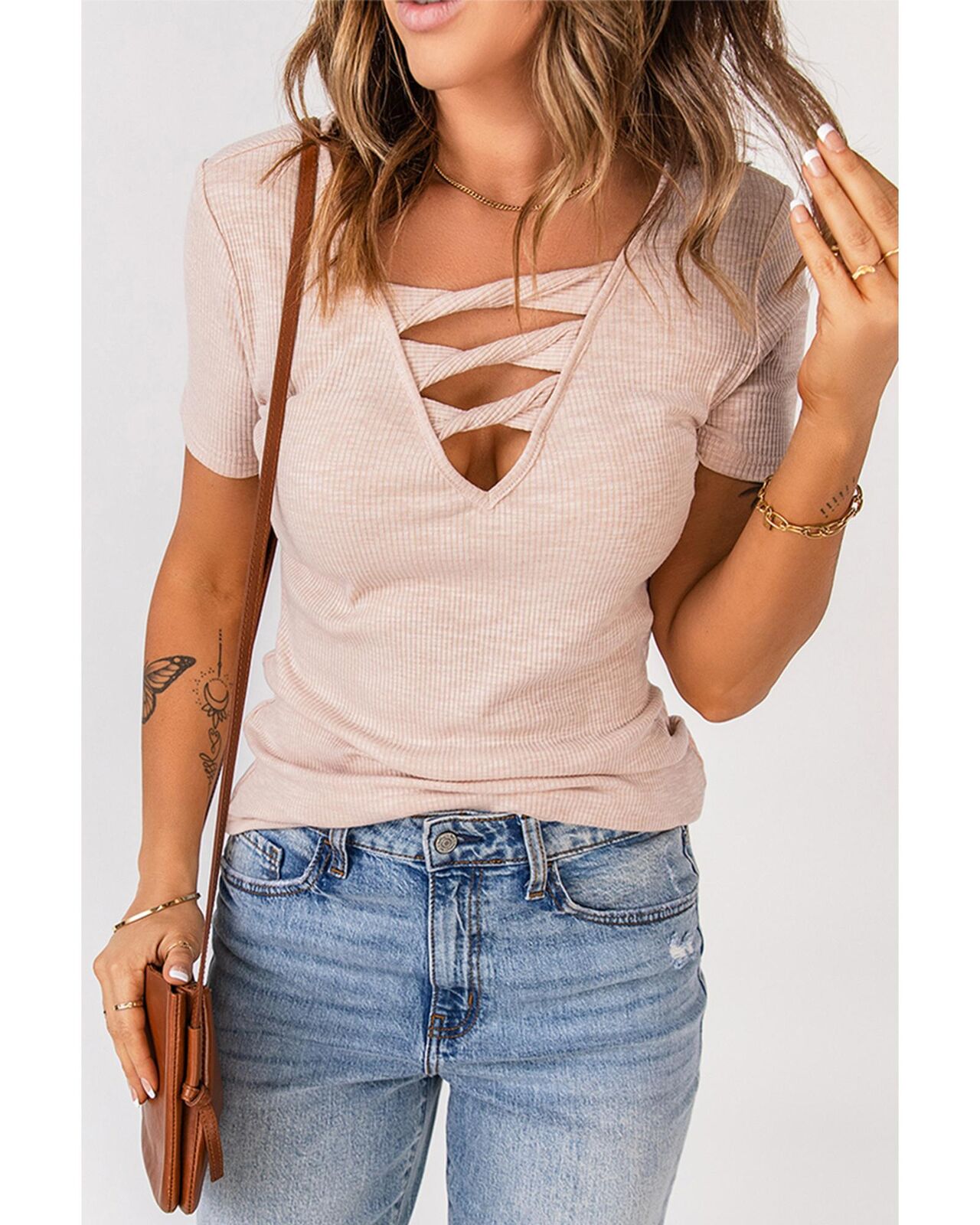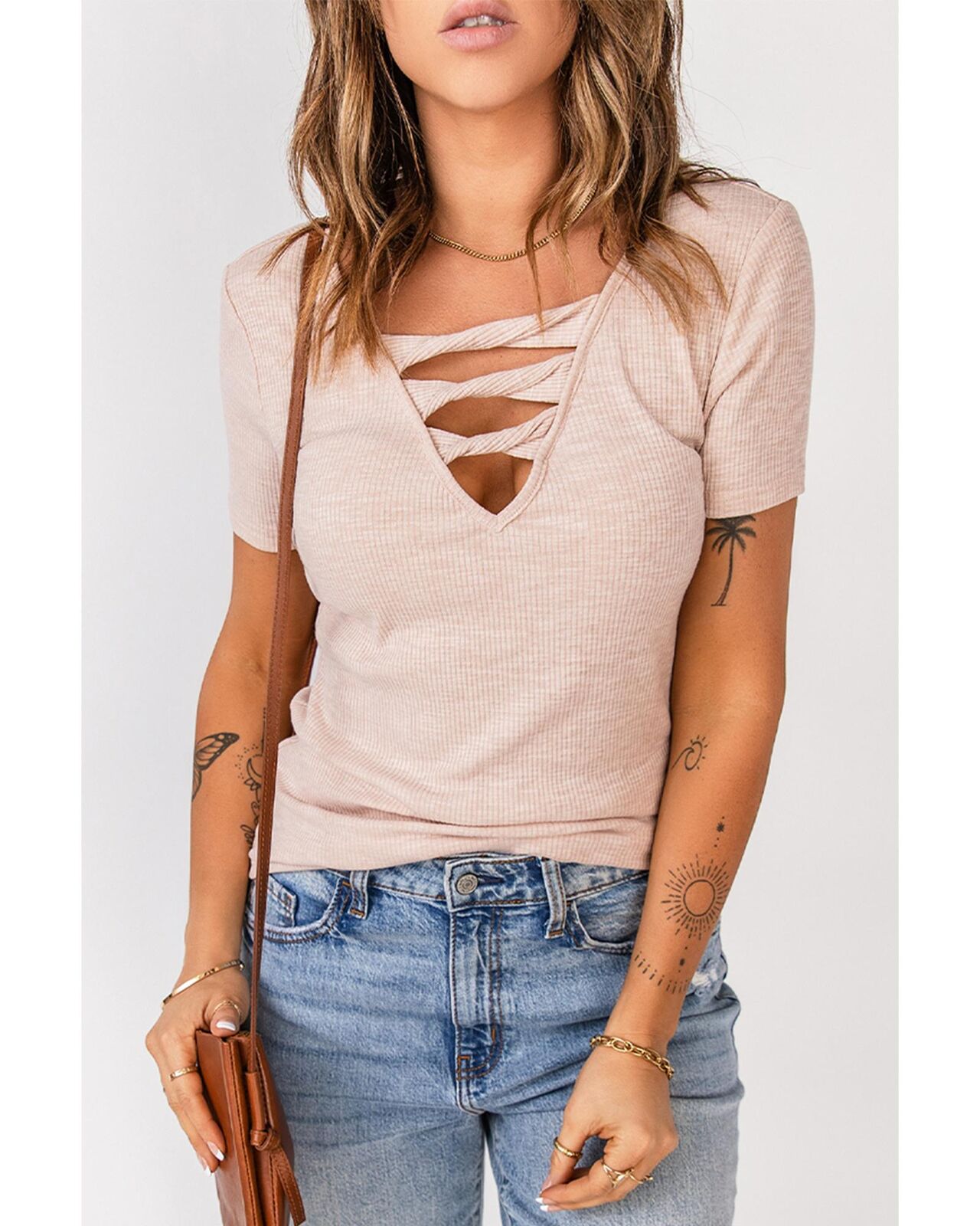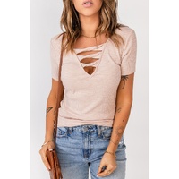 Azura Exchange Hollow-out Neck Rib Knit T Shirt - 2XL