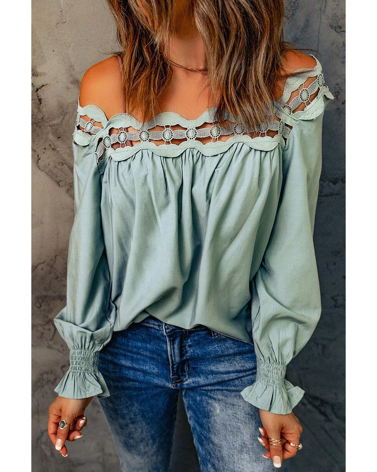 Azura Exchange Hollow-out Scalloped Neck Blouse