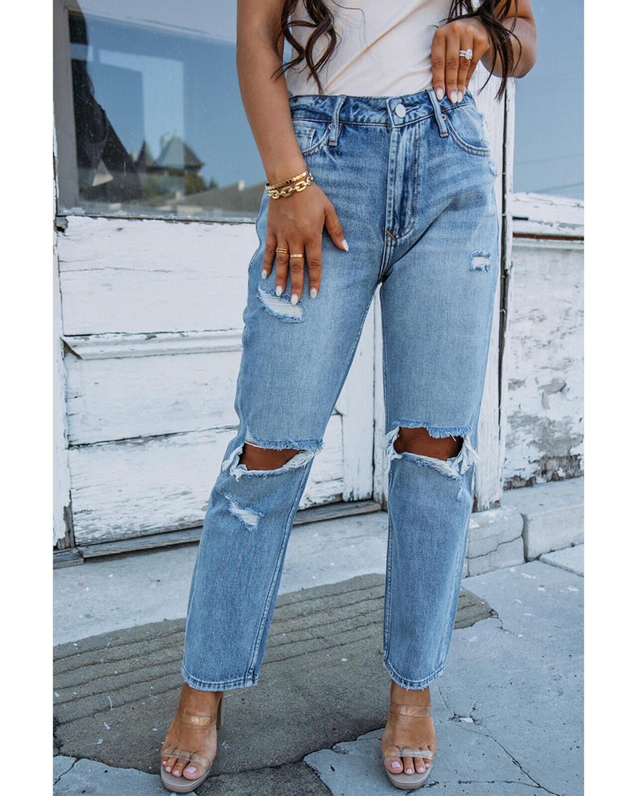 Azura Exchange Knee Cutout Straight Leg Jeans