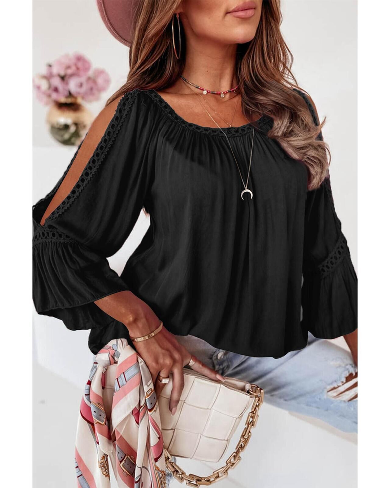 Azura Exchange Lace Crochet Cut-Out Ruffle Blouse