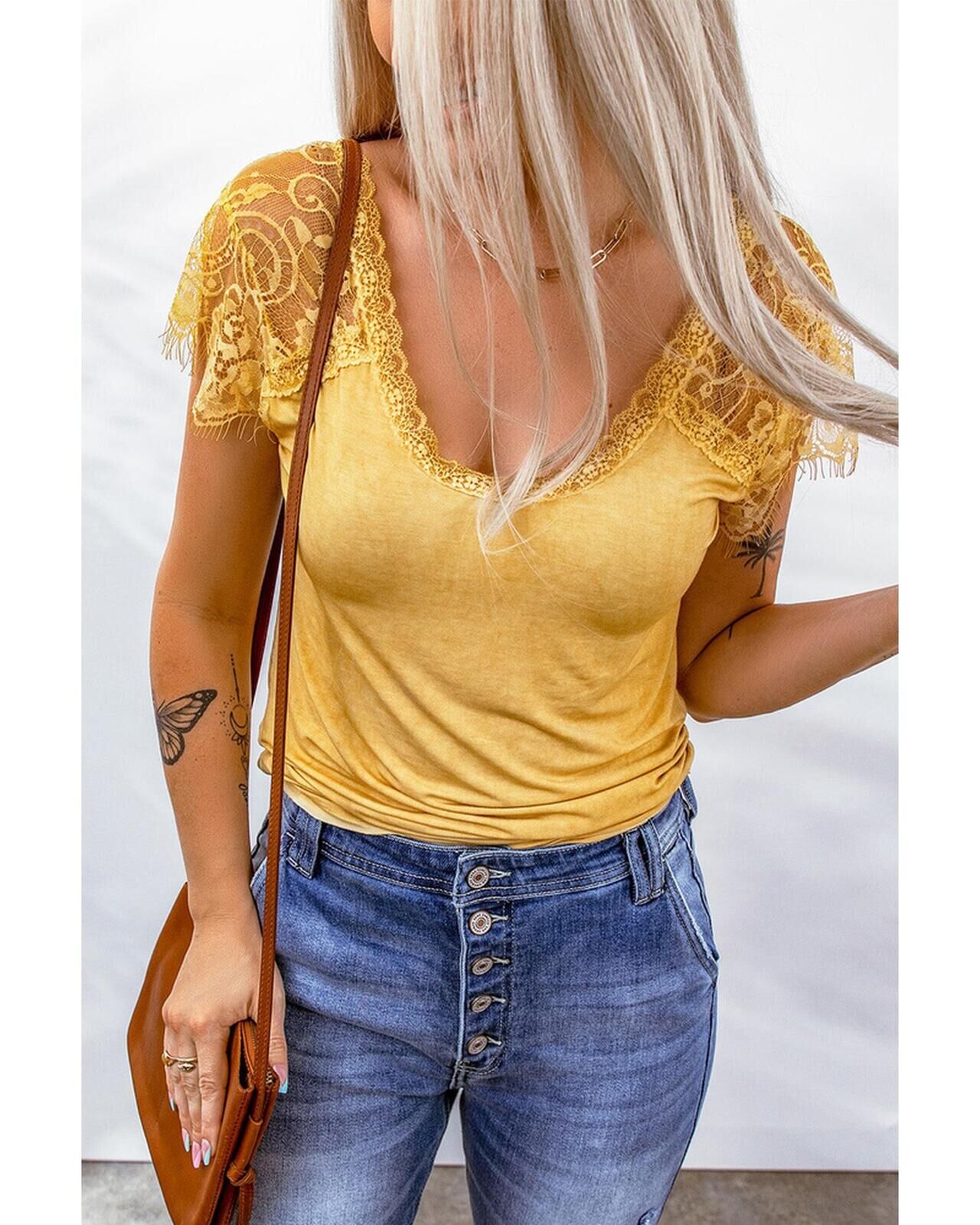 Azura Exchange Lace Crochet Short Sleeve T-Shirt