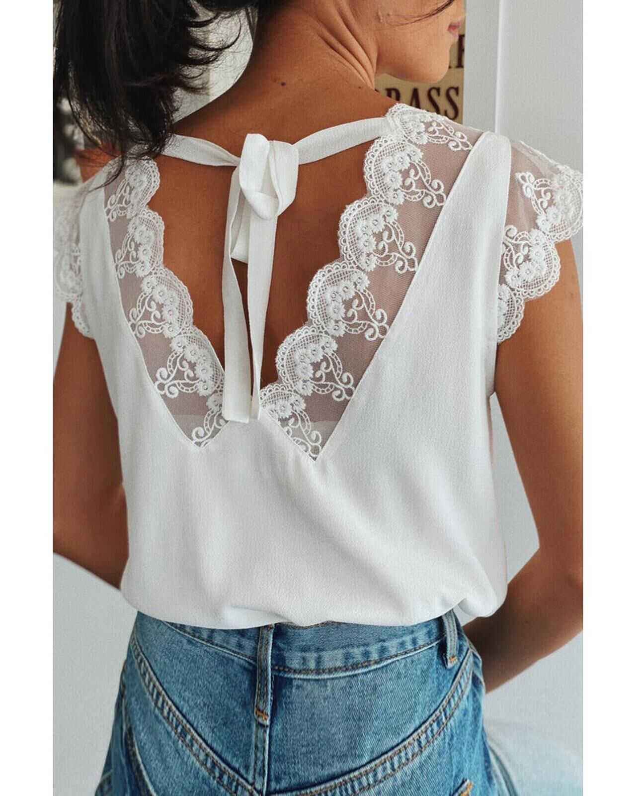 • Stylish and feminine Lace Patchwork Lace-up Backless V Neck Blouse