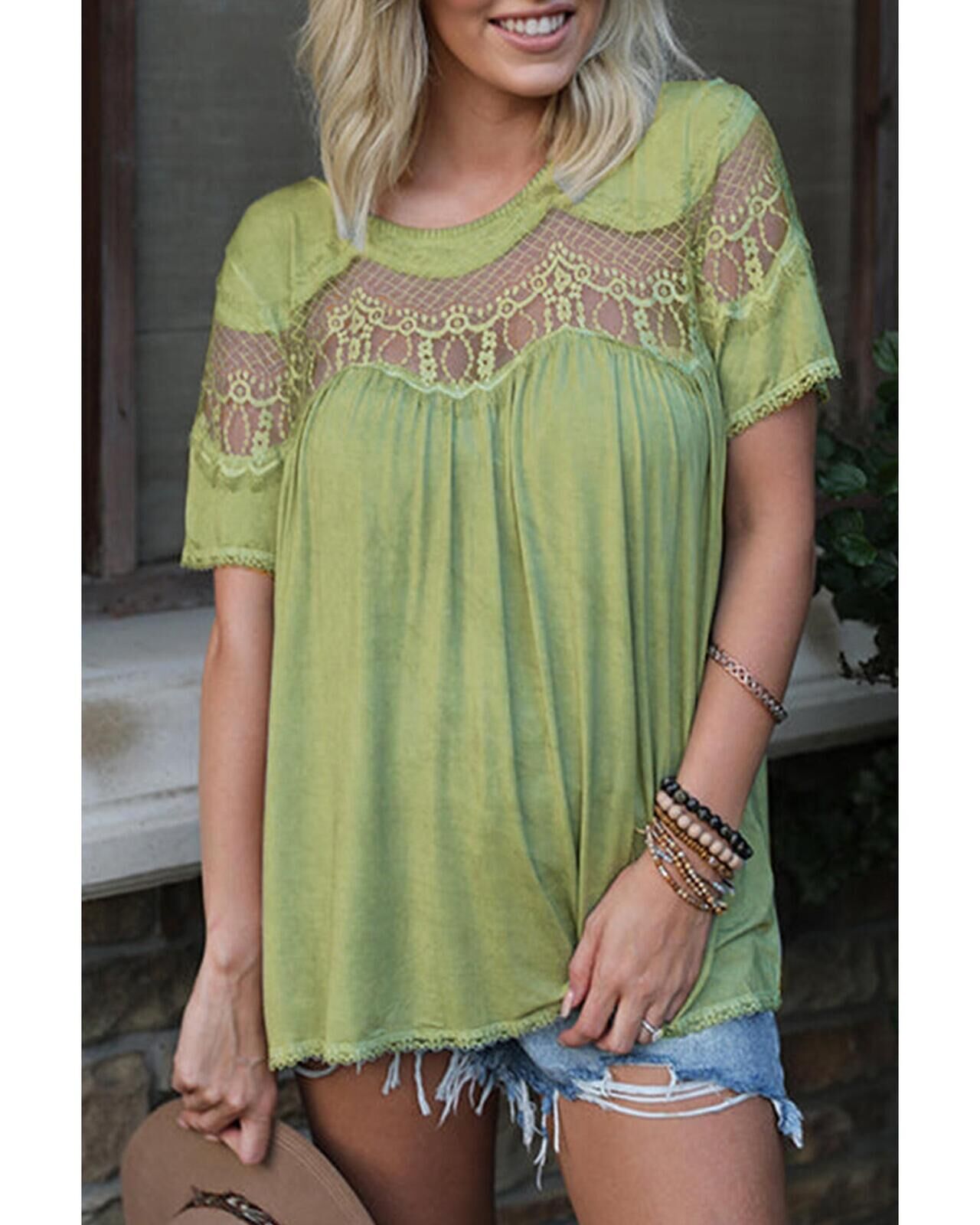 • Stylish and feminine Mesh Lace Trim Short Sleeve Top