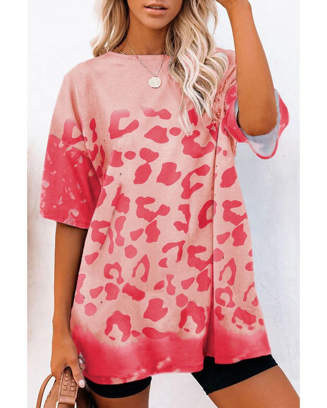 Azura Exchange Leopard Bleached Casual T-Shirt