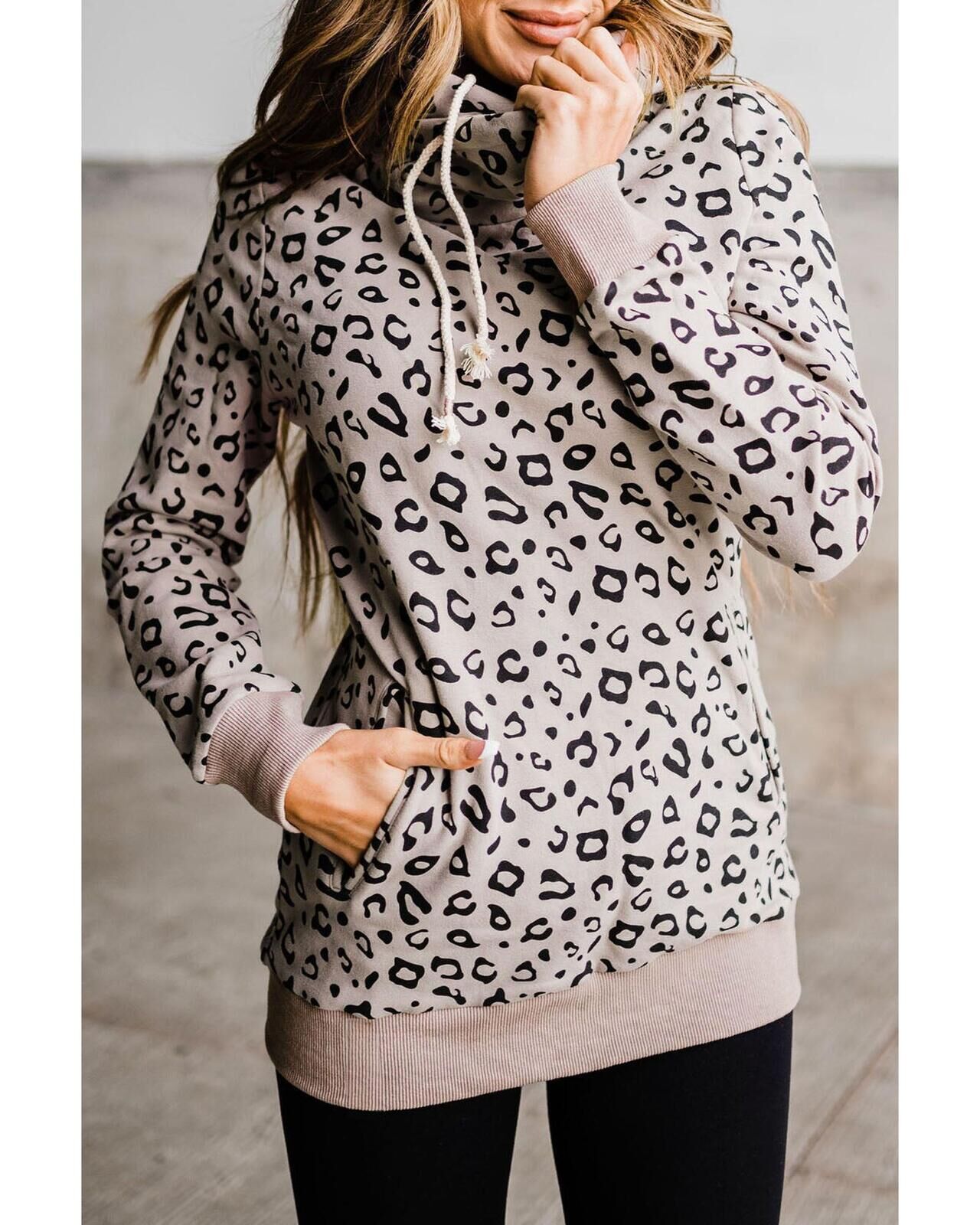 Azura Exchange Leopard High Neck Hoodie with Kangaroo Pocket