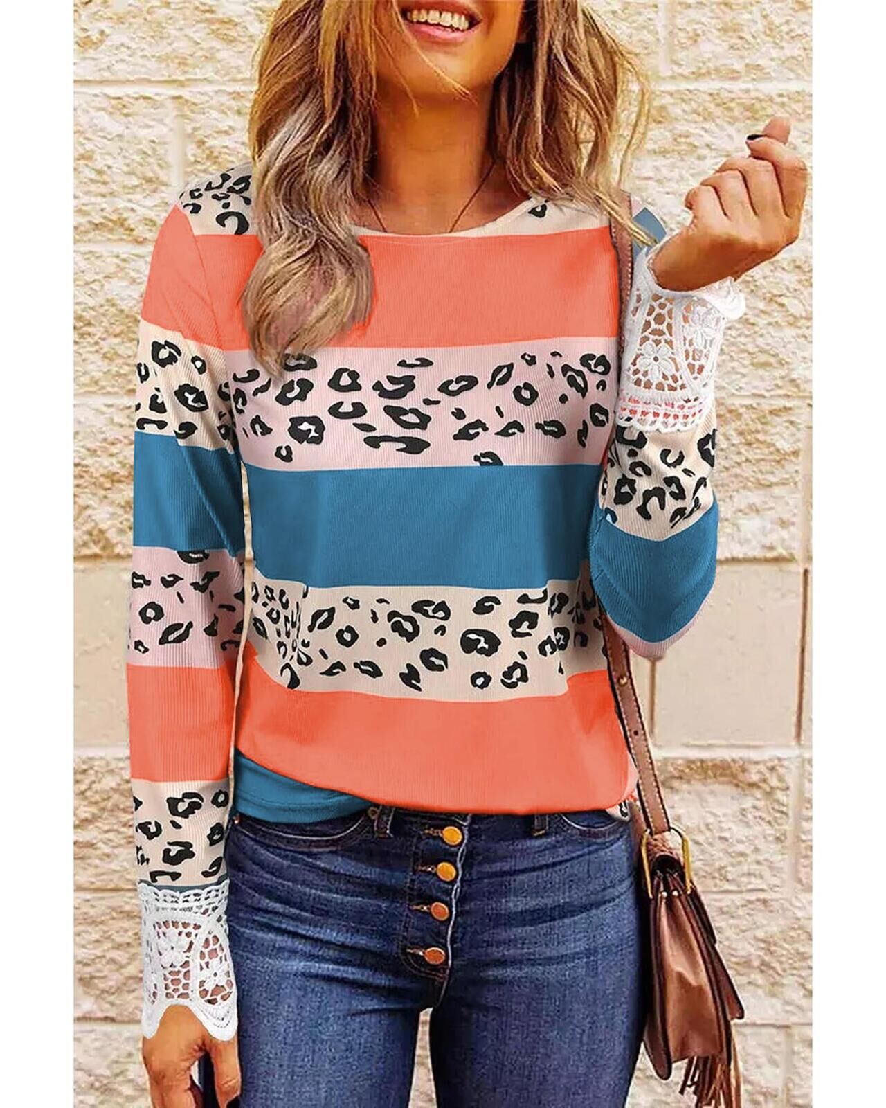 • Stylish and trendy Lace Splicing Leopard Color Block Top