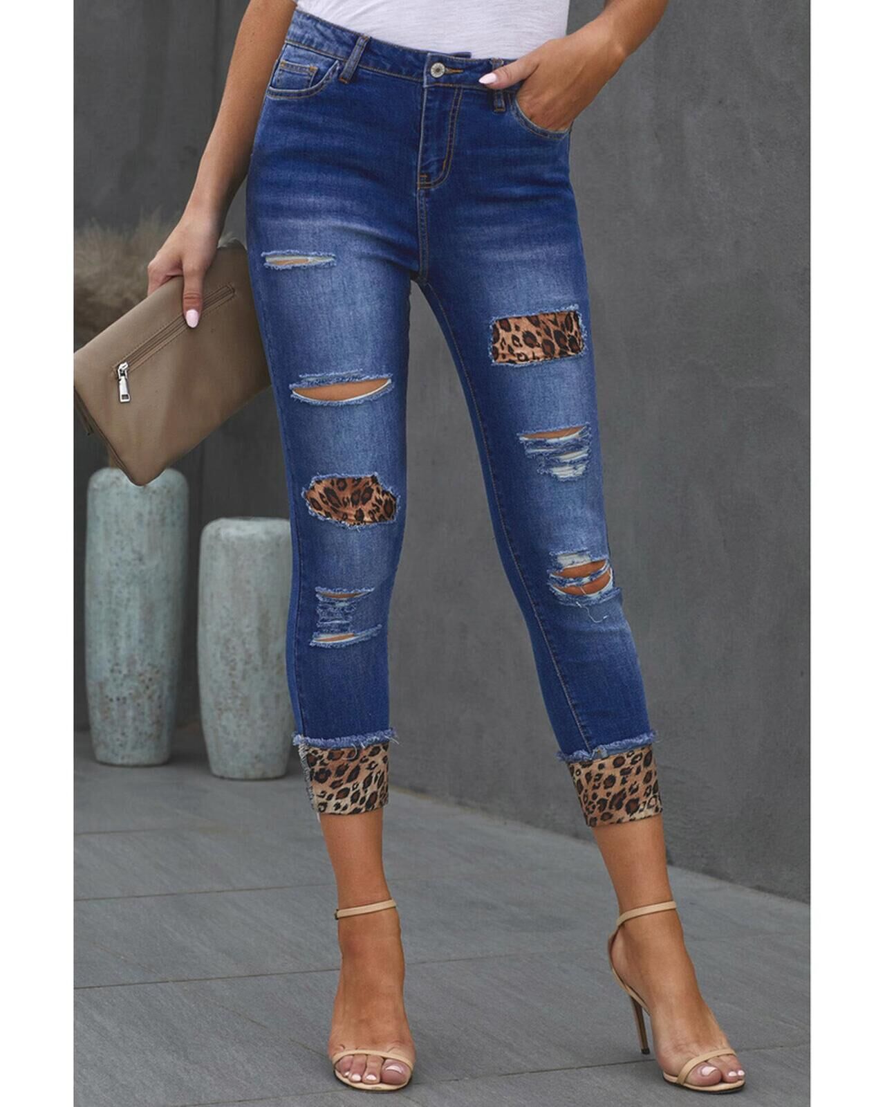 Azura Exchange Leopard Patches Distressed Skinny Jeans