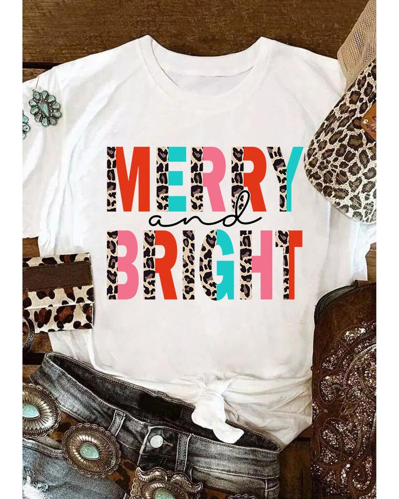 • Stylish and trendy Merry and Bright Leopard Print Short Sleeve Graphic Tee