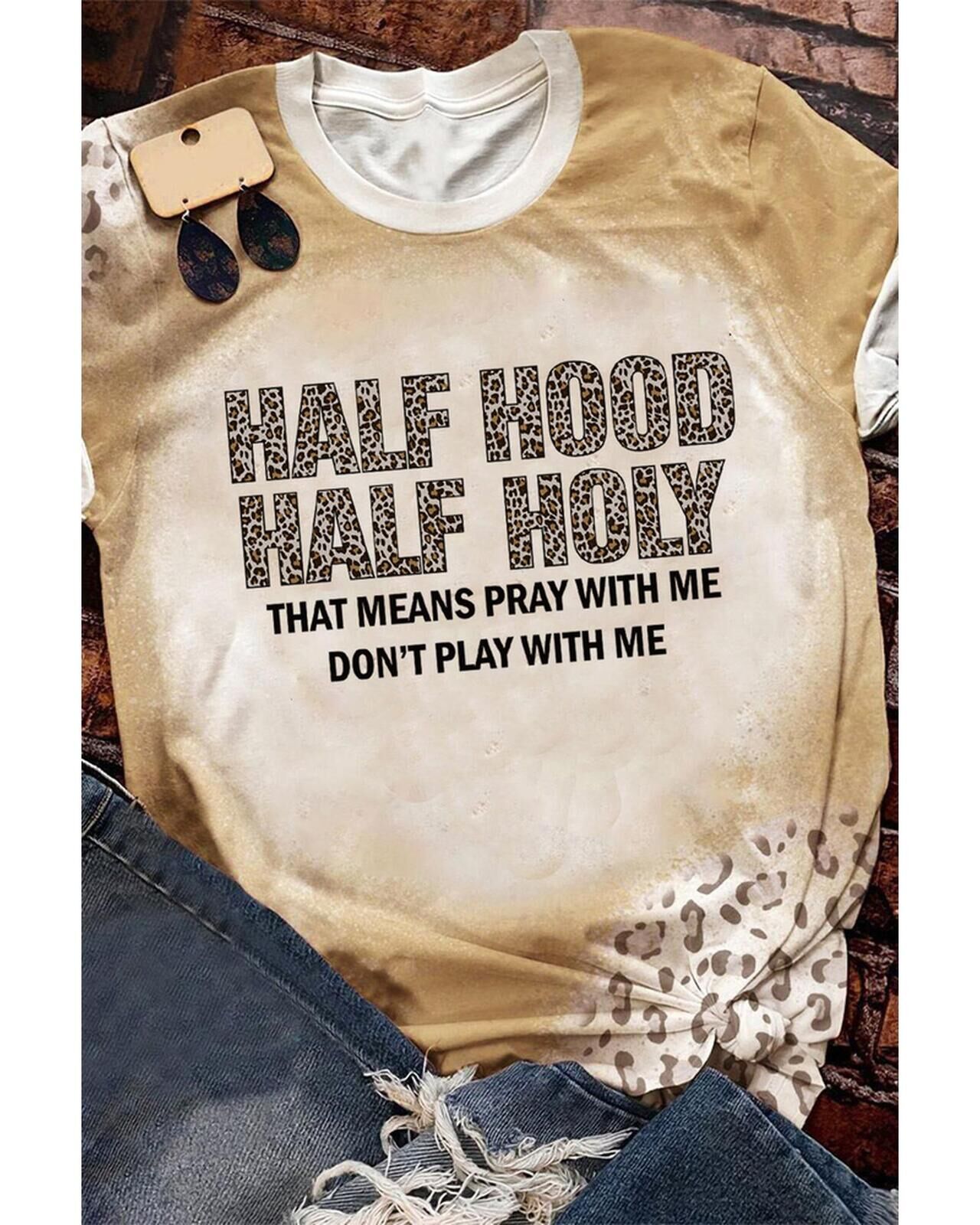 • Khaki Half Hood Half Holy Leopard Short Sleeve T-Shirt