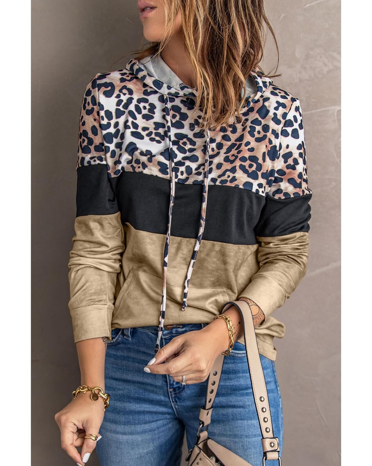 • Stylish and trendy Khaki Leopard Tie Dye Colorblock Hoodie