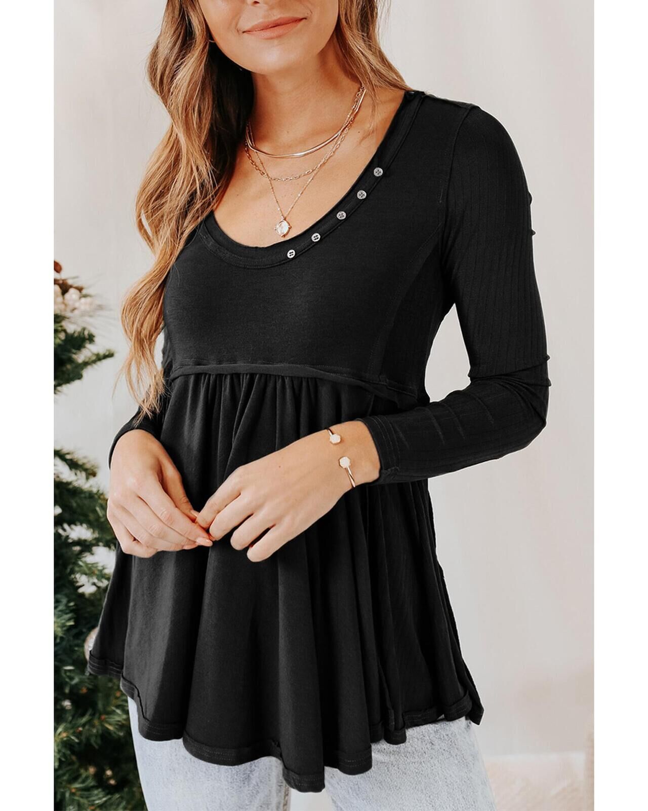 Azura Exchange Long Sleeve Buttons Babydoll Blouse