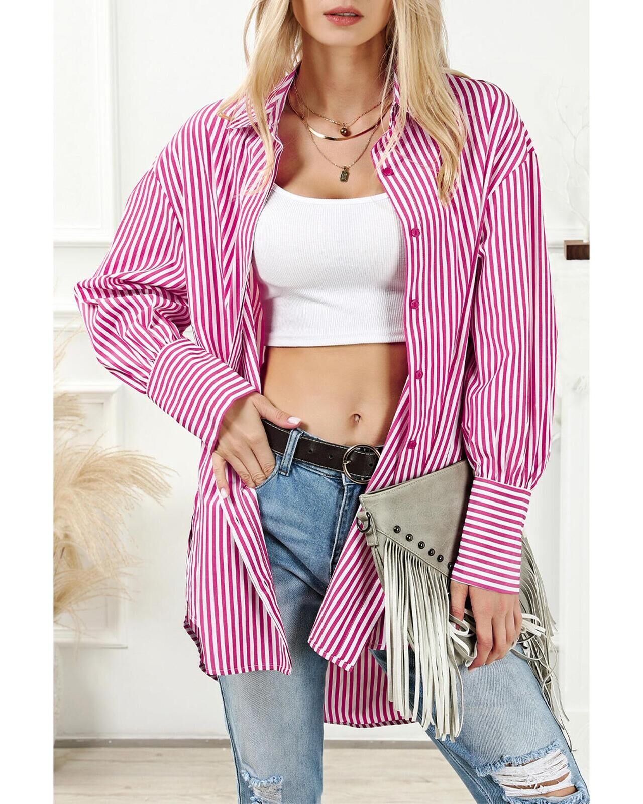 • Stylish and versatile Striped Bishop Sleeve Side Slit Long Tail Shirt