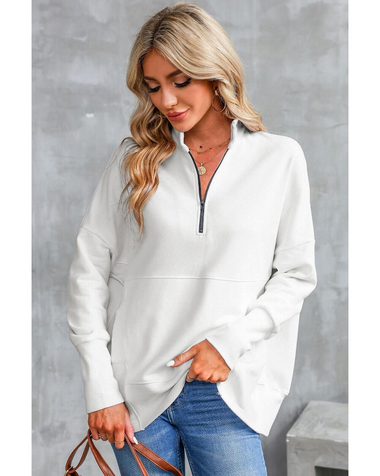 • White Oversized Quarter-Zip Pullover Sweatshirt